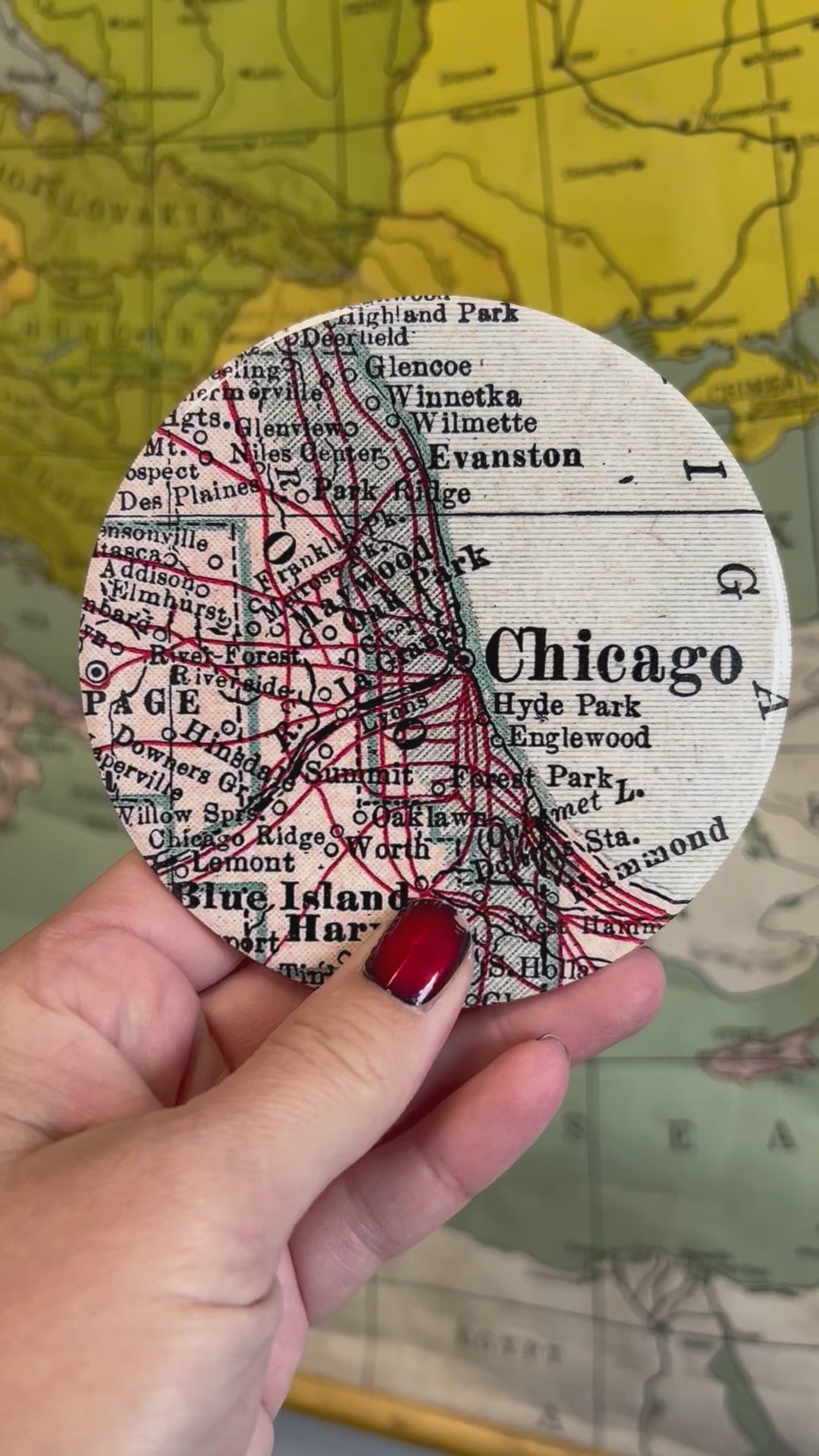 Our Custom Map Ceramic Coasters feature vintage map imagery selected just for you — a hometown, lake, college campus, favorite travel destination, or place full of memories. Each coaster is designed and printed by hand in our Columbus, Ohio studio using maps from our in-house collection.