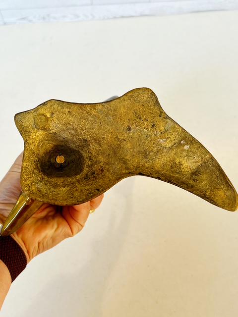 The warm brass finish and natural patina highlight its age and character, while the sculptural form fits seamlessly into MCM, nautical, or beach-inspired interiors.